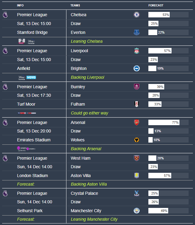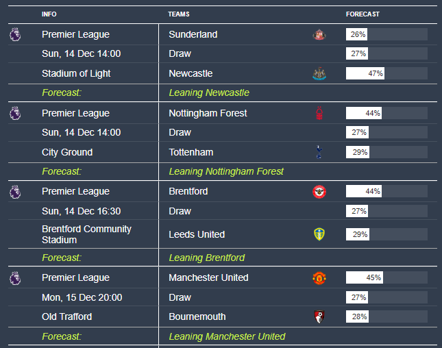 Football4Cast Weekend Preview 12 December 2025