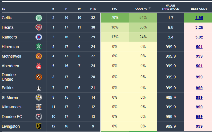 In conclusion: Celtic will almost certainly be fine, and they’ll probably win the league. But 70% isn’t 95%. For the first time in years, Hearts do have a valid reason for a little bit of hope.