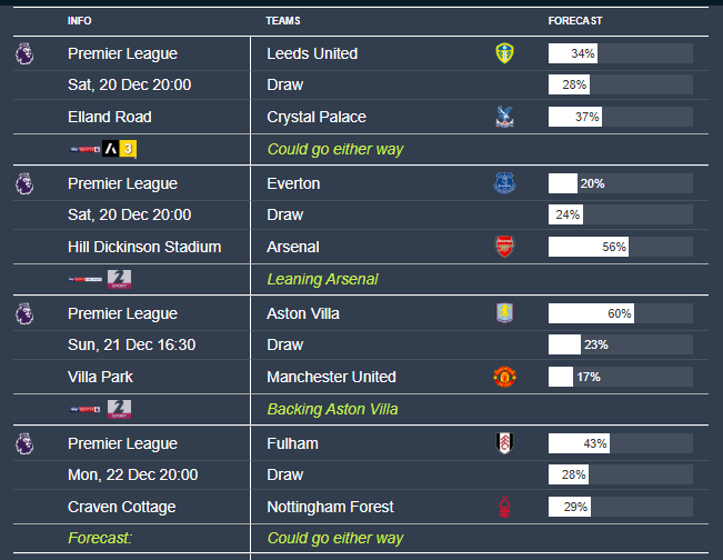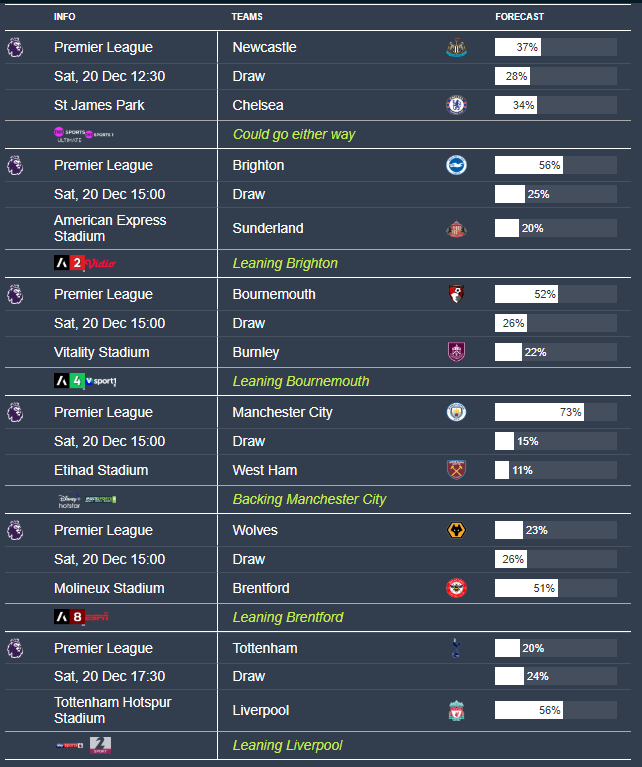 Welcome to the Football4Cast Weekend Preview for 19 December. We’re heading into the best stretch of the Premier League season — the festive fixture pile-up. Matches are coming thick and fast in a chaotic, brilliant period that leaves every foreign manager utterly baffled and complaining about the lack of a winter break.