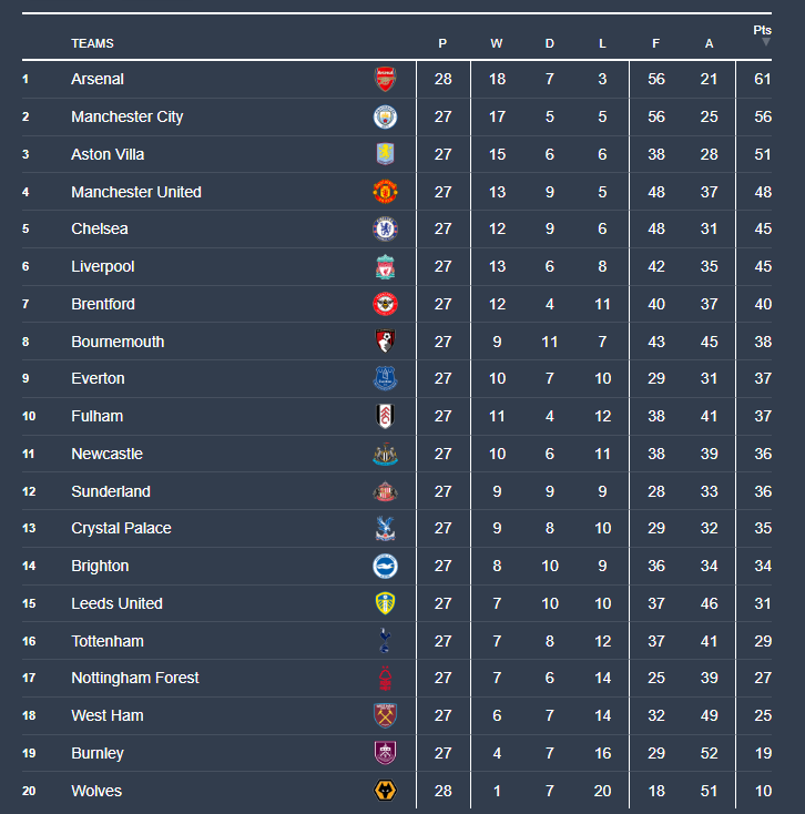 Liverpool are sixth on 45 points, level with Chelsea and just outside the top four. West Ham are 18th with 25 points and in the relegation zone. Liverpool are strong favourites at 71%, with West Ham given just a 13% chance of an upset, suggesting more pain for Nuno’s hammers.