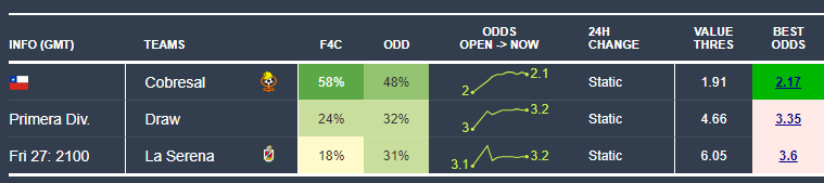 Another great pick over in Chile. Cobresal are undervalued at home to La Serena.