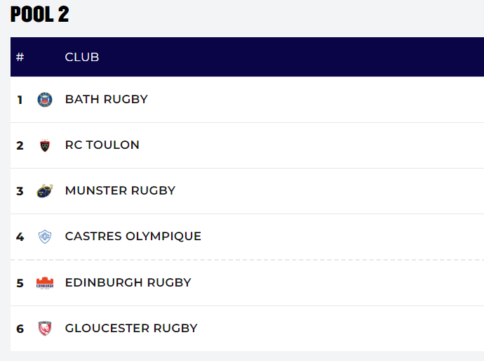 Pool 2 could be the most competitive of all. Toulon’s resurgence under Pierre Mignoni sees them enter as favourites to top the group, while Munster’s consistency in Europe keeps them in the mix for a home Round of 16 tie. Bath have more than enough pedigree and attacking depth to overcome either of those two. Edinburgh remain a difficult side to beat but may struggle to convert performances into results. Gloucester and Castres round out the group, both needing something special to stay alive beyond January.