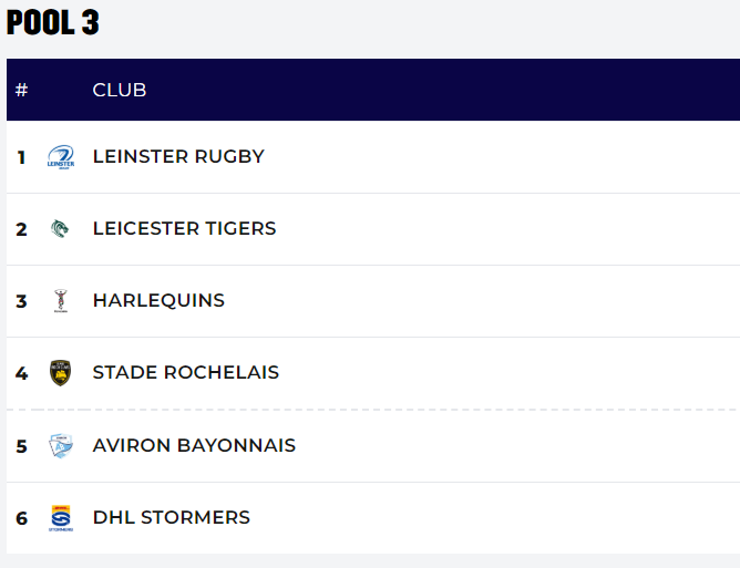 Pool 3 looks very straightforward at first glance, but it’s filled with potential pitfalls. Leinster, so often imperious in the early rounds, are heavy favourites to win all four of their matches. La Rochelle, twice European champions in recent years, should secure second place without much difficulty. Leicester’s physical edge may be enough for third, with Harlequins capable of an upset on their day but likely to fall short. Stormers and Bayonne will need near-perfect campaigns to stay in contention, though the Cape Town side could yet influence who goes through with their home fixtures.