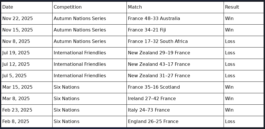 Following the Autumn Internationals, France have actually slipped to fifth in our World Rankings, behind Ireland and England, but the margins are incredibly tight. Whilst they beat Australia and Fiji, both the matches were closer than expected. There was also a damaging defeat at home to South Africa, which was a real setback in France’s progression towards the next World Cup. Last Summer, France lost their three matches on tour to New Zealand, however, they did leave most of their star players at home and used the tour to develop younger players. France are the reigning 6 Nations champions, but surprisingly they have only won twice in the last ten years in 2022 and 2025.