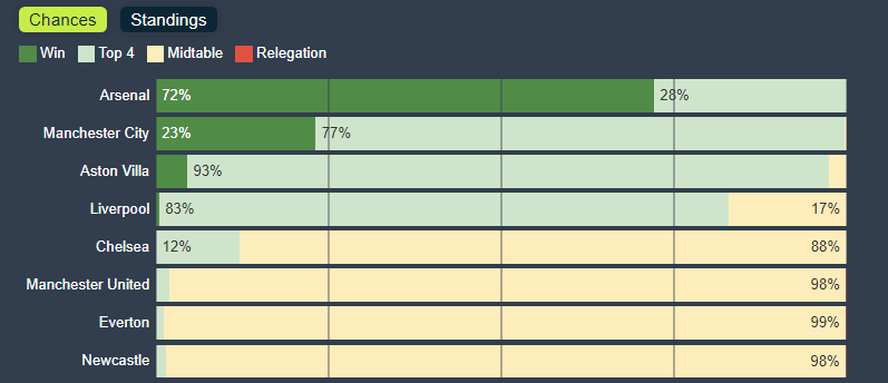 Premier League Festive Chaos: Arsenal with 70%+ chance of winning the title!
