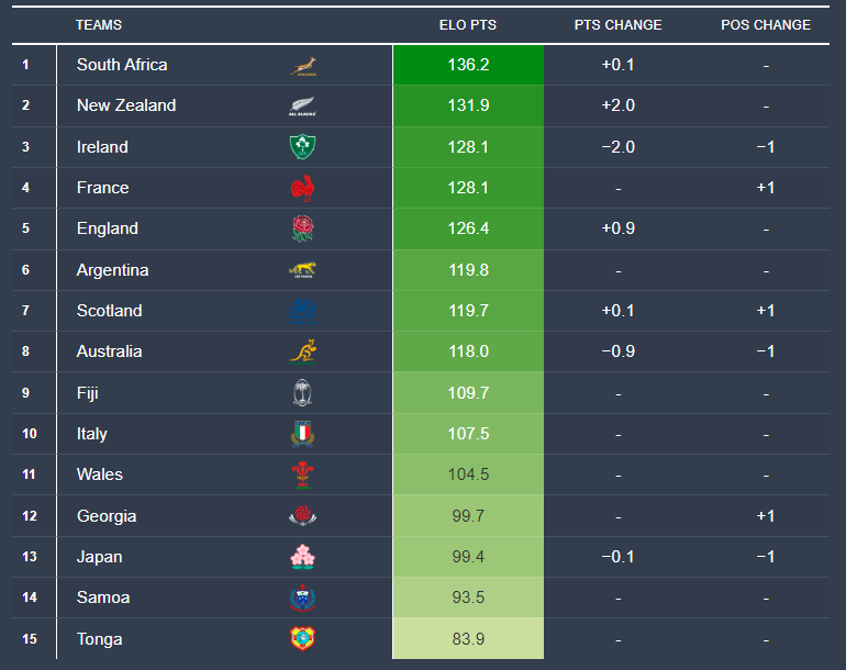 While World Rugby’s official rankings grab the headlines, here at Rugby4Cast we run our own proprietary Elo-based model, which we believe offers a truer reflection of form and performance.