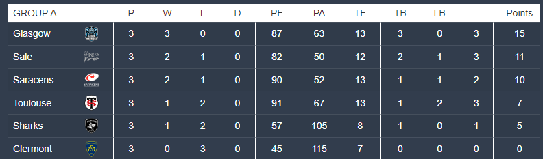 Glasgow Warriors sit top of the pool and are already through. Their focus now is entirely on seeding. They host Saracens in one of the headline fixtures of the round, and a win would confirm a high seed and a home Round of 16. Given the congestion behind them, Glasgow will be keen to remove all doubt.