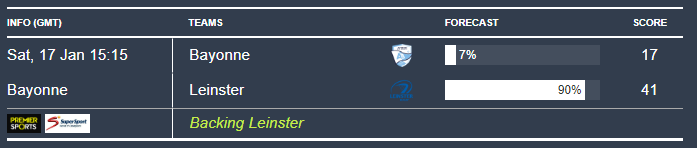 Leinster are already through and have largely put domestic doubts behind them in Europe. Their strong pre-tournament positioning is being justified, and they should cruise to top spot with a win away at Bayonne.