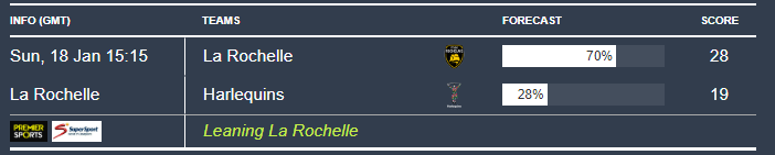 Harlequins are the surprise package in second place following an excellent win away to the Stormers last time out. That position is now under threat as they travel to La Rochelle as significant underdogs.