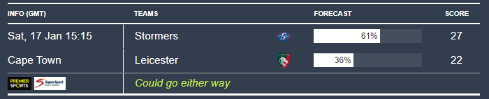 Stormers are at home to Leicester and are favourites. A win should see them safely through and possibly into a home match in the last 16 at Harlequins’ expense.